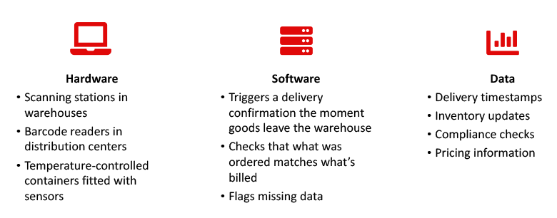 当然,还有“数据”。这里说的不是患者个人数据,而是流程数据:发运时间戳、库存更新、合规检查、价格信息等。如果没有干净、互联的数据,再好的硬件和软件也很难发挥真正效果。