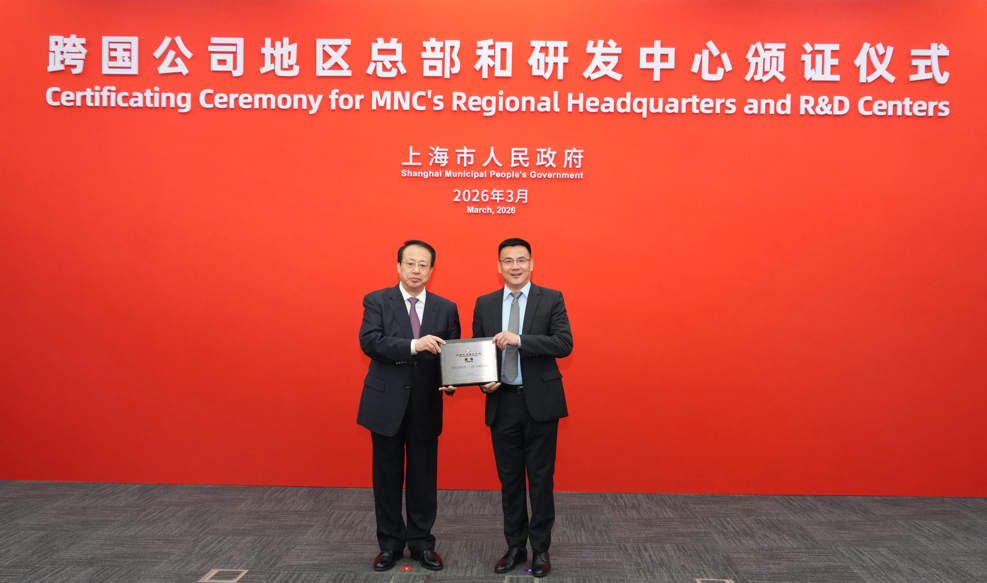 3月18日,上海市第42批跨国公司地区总部和外资研发中心颁证仪式举行,上海市市长龚正亲自为15家外资研发中心颁发证书。中国总经理黄刚受邀参会,代表公司领取“上海市跨国公司研发中心”证书。